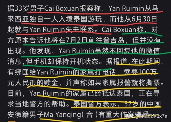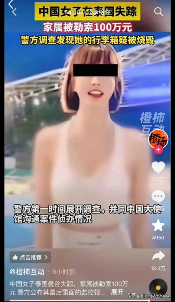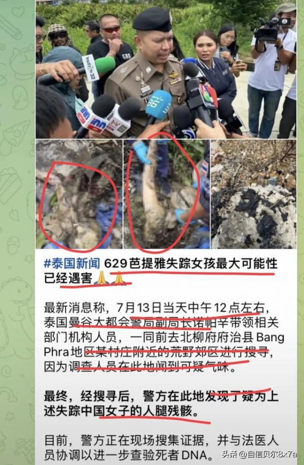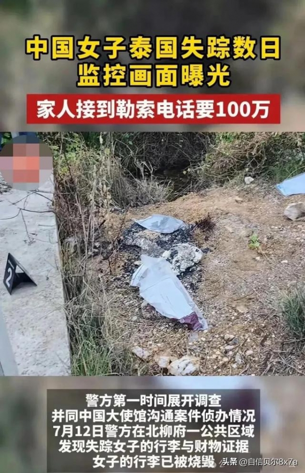 38岁中国女子在泰国遇害,遇害前被绑架,要求女子家人赎金100万,并且要求女子家人不得报警或者求助大使馆。实行犯罪的正是女子的身边人,不是陌生人。女子被找到的时候只有一堆焦炭,还有一条腿,女子生前好友通过细节确认了这个女子的身份,女子生前最后聊天记录曝光。