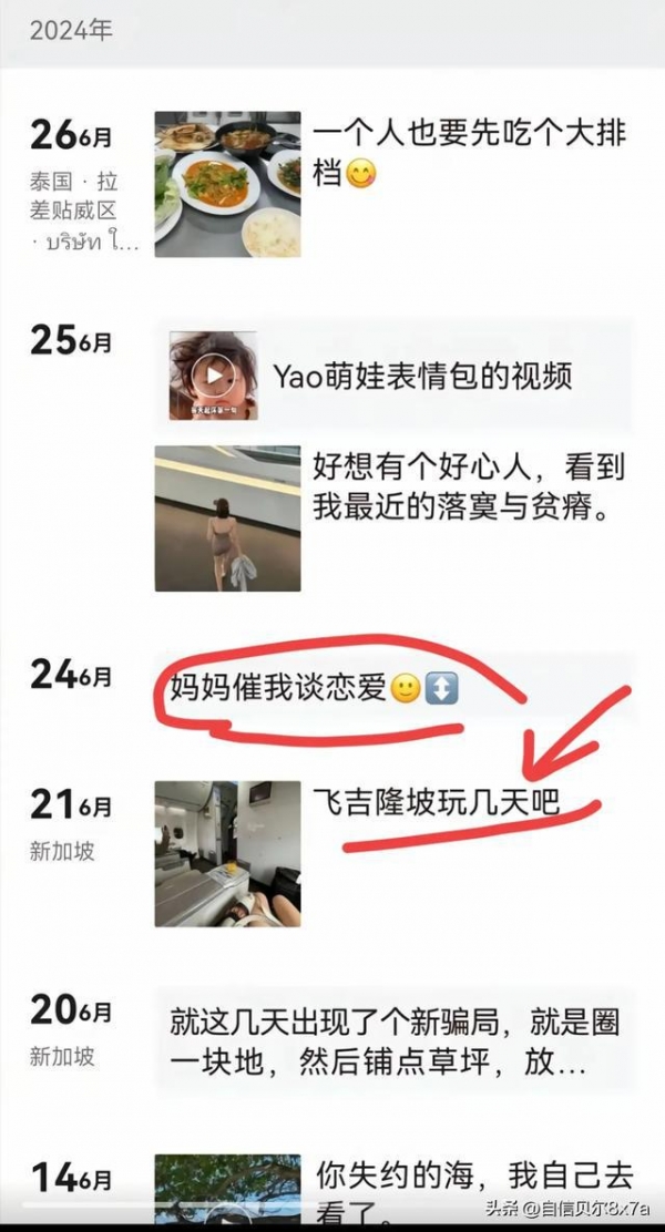 他还提到她妈妈催婚,然后还晒出来女子的社交状态。