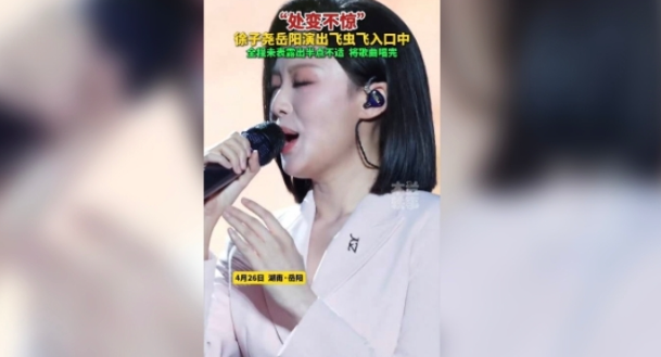 歌手徐子尧演出时飞虫进嘴仍顺利唱完。徐子尧舞台高能应变!飞虫入嘴仍稳唱全场。
