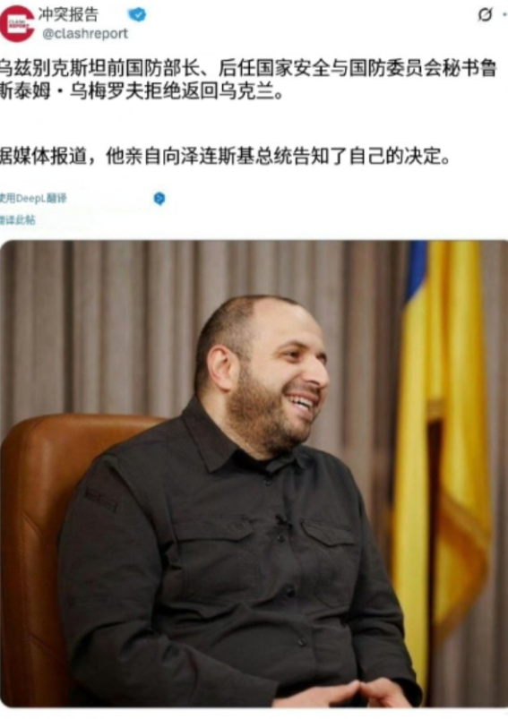 乌克兰国家安全与国防委员会秘书、政府排名第三的鲁斯特姆·乌梅罗夫,公开宣布拒绝返回乌克兰,不仅消失在土耳其,还顺手把泽连斯基的执政口号当段子讲。