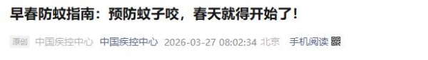 3月27日,中国疾控中心发文提醒:预防蚊子咬,春天就得开始。