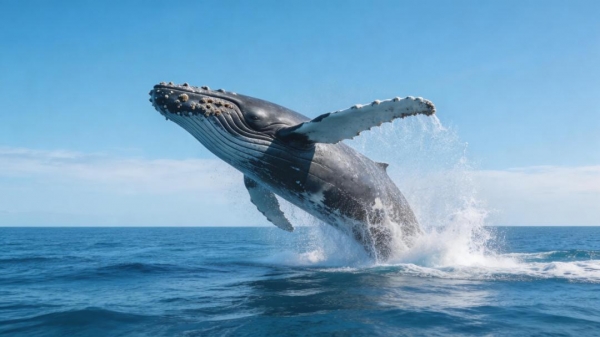 想象一下,在广袤无垠的海洋里,座头鲸这样的群居伙伴如何保持联系?一次有力的跃起,伴随着巨大的"噗通"落水声和四溅的水花,就像在寂静深海中打开了一个高功率的"广播电台"。这声响能穿透遥远的距离,帮助分散的鲸群成员相互定位,传递信息。有时,一群鲸鱼接连跃起,那场面就像一场盛大的水下音乐会开场,充满了社群交流的活力。