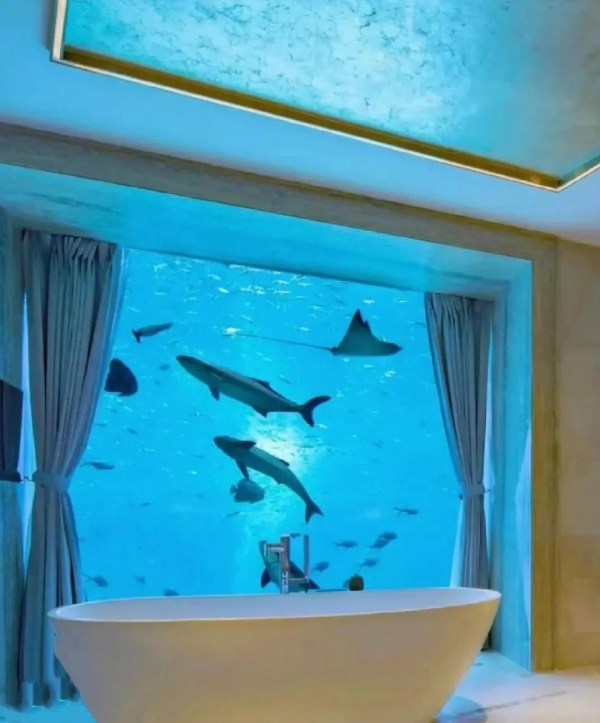 但质疑声也随之而来。最受关注的是隐私问题,有网友称,这其实是双向窥视,住客开灯后房间里的情况可能被泳池里的人看到,游泳的人也在不知情中变成了"移动景观"。有人提出,如果入住的是女性,这种毫无防备的暴露可能会引发安全顾虑。哈有网友担心,长期水压作用下玻璃可能破裂,或者密封胶老化导致漏水,甚至影响电路安全。