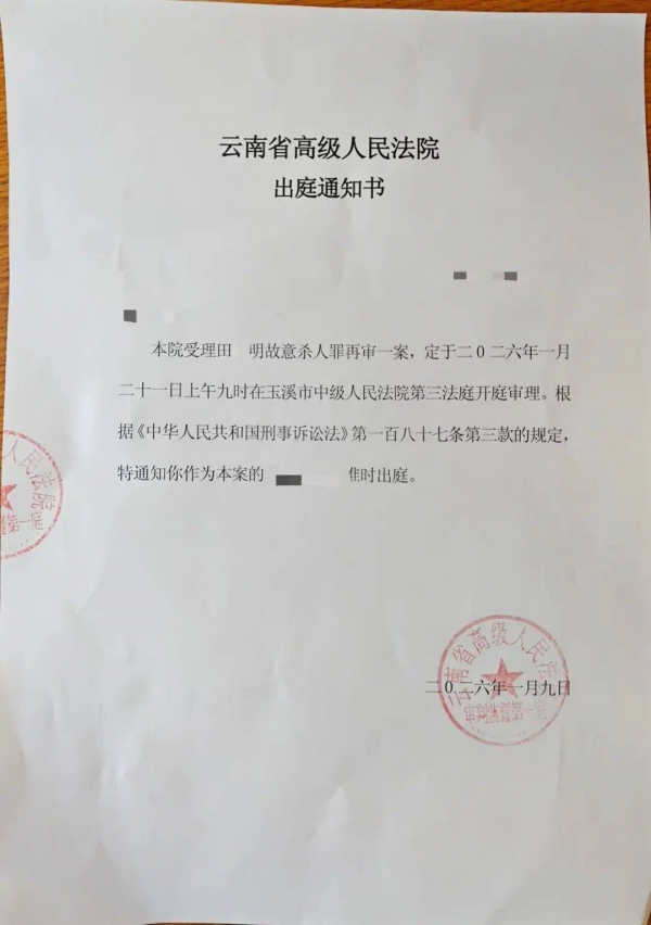 近日,媒体从家属处获悉,备受关注的"男子强奸嫂子杀人未遂、出狱后报复嫂子又杀害见义勇为者"一案,将于1月21日由云南省高级人民法院再审开庭。
