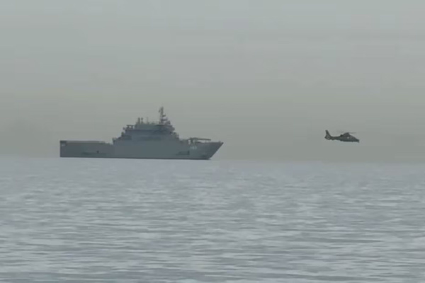 当地时间4月12日,波斯湾霍尔木兹海峡附近,军舰正在航行。 华尔街日报