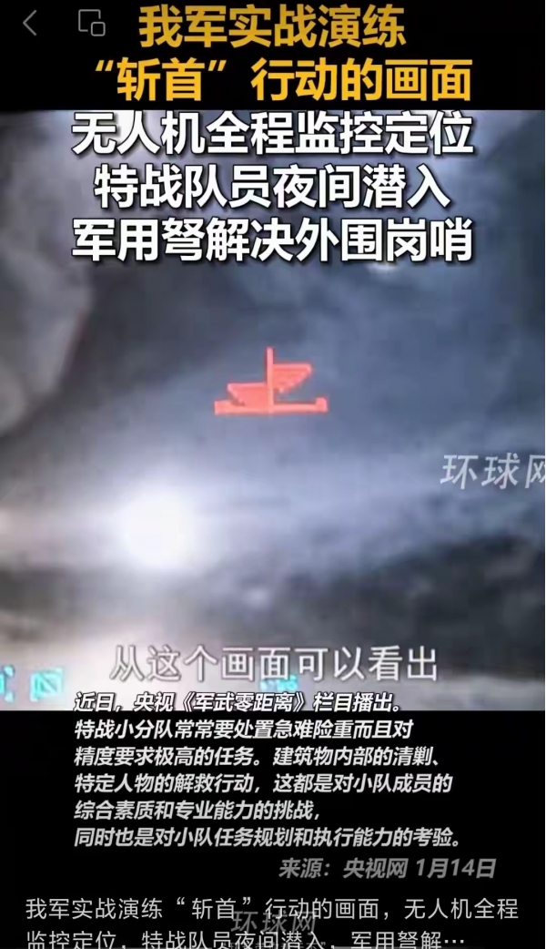 最近央视《军武零距离》曝光了解放军实战化"斩首"演练的画面,看得人热血沸腾。特战小分队在无人机全程监控定位下,趁着夜色突袭,飞快清剿建筑物,还"击毙"了四名"暴恐分子"。