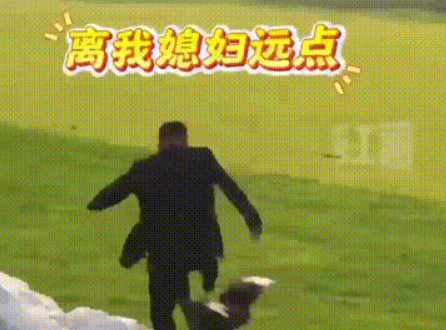 新郎见状用手里的捧花砸过去,但黑天鹅却径直绕过了新郎,转而朝着因穿了婚纱行动不便的新娘追去,画面看起来又无奈又好笑。