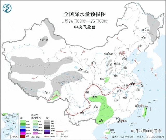 25日至27日,冷空气将影响中东部地区,将带来3~6℃、局地8℃以上的降温,华北、东北地区南部、黄淮北部等地有小到中雪,黄淮中部、陕西南部有雨夹雪,河南南部、湖北北部等地局部有冻雨;江汉东部、江淮、江南、华南及贵州等地有小雨。