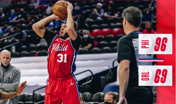 费城76人马克西31分1板6助,乌布雷19分3板1助,乔治19分3板1助,埃奇库姆19分11板;奥兰多魔术贝恩34分3板3助,班凯罗18分5板4助,小瓦格纳12分4板3助。