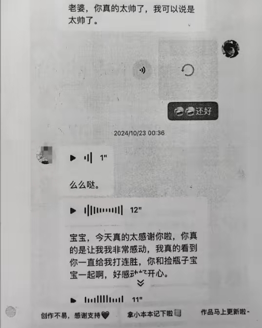 因为小梦打赏金额最大,她在好几个直播间都成为"榜一大姐"。而那些主播是怎么"回报"她的?聊天记录显示,与主播"江某某"几乎每天睡醒就打招呼,凌晨说晚安,对方回复不及时,她就闹脾气说"不如换一个人刷"。对方反复解释道歉,连续几天主动发信息、分享个人视频,请求"俊宝理我一下"。另一位主播"狐狐某某",两人互称"老婆、宝宝",对方考核期会发信息求助,一周年时会发来"一周年快乐"。
