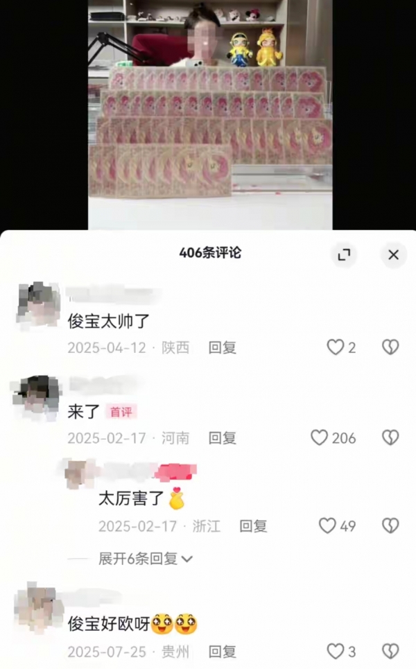 截至2025年11月事发,小梦累计盗用、挪用的资金高达1700万元,其中打赏主播约1100万,还有600多万用于在直播间买拆卡盲盒。什么叫拆卡盲盒?就是网友在直播间买整盒卡通卡片,主播现场拆,拆出的稀有卡片可以折现变卖--本质上是一种变相的网络赌博式消费。因为小梦是"优质客户",有卖家还专门为她拍了一期拆卡视频,评论区数百条留言全是夸她"太帅了"。