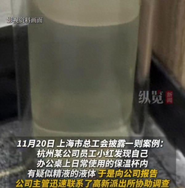 2014年5月,杭州一家公司办公区里,女同事的保温杯被同部门同事张某三次留下精液,警方认定其寻衅滋事并行政拘留3日