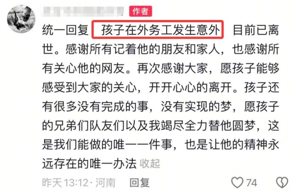 4月3日,多位来自河南的网友发文,沉痛悼念自己的朋友任泽宾,一个只有19岁的大男孩。