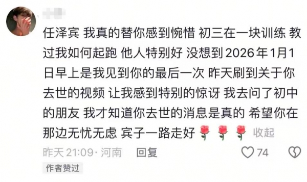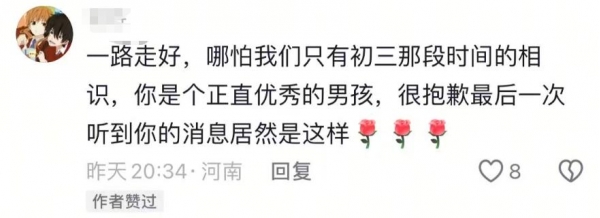得知任泽宾去世的消息后,很多与其有过交集的老师、学生、邻居纷纷发声悼念,在大家的心中,任泽宾懂事、有上进心、体育成绩好、是大家心中的暖男,大家也不愿意相信他真的离开了。