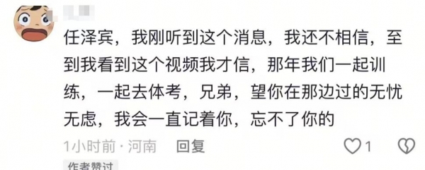 和任泽宾一起训练过的兄弟更是难以接受这样的事实,而那些吃苦跑步的日子,也成了这些孩子们心中最美好的回忆。