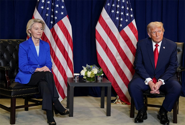 当地时间2025年9月23日,欧盟委员会主席冯德莱恩与美国总统特朗普在纽约举行会晤。 IC Photo