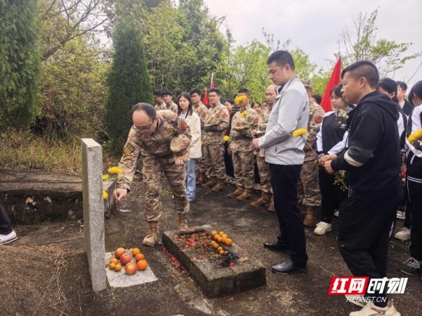 红网时刻新闻4月3日郴州讯(通讯员 刘克坚 欧阳宇轩 夏峰)又是一年清明时,桂阳县四里镇芹溪村后山腰的无名红军墓前,苍松含思、青山寄情,一场跨越五代的追思在这里接续。原村支书胡善炎与镇村干部、村民、青少年学生、当地民兵、当地企业近百人一同来到墓前,整理墓碑、列队默哀,以质朴真挚的方式缅怀长眠于此的革命先烈。