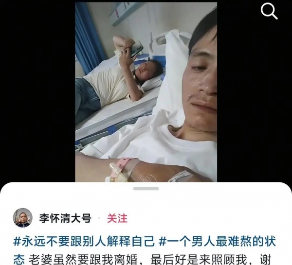在他的很多视频里,常出现的是他和年幼的儿子,孩子母亲很少露面。后来,关于婚姻状况的猜测越来越多。再往后,李怀清自己说过,已经和妻子离婚,但对方还是会来照顾他。这里面的具体内情,外人其实很难说清,也不能轻易替任何一方下。可有一点很多人都看得明白:当一个家庭遇到重病,最先被考验的,往往不是钱,而是关系。