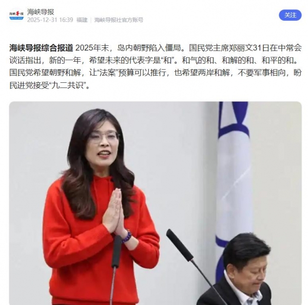 就在展望2026年这一关键时间节点时,她甚至做出了双手合十祈祷的动作,一遍遍地呼吁"以和为贵",希望两岸能够哪怕有一丝和解的可能,避免兵戎相见。她甚至还抱有某种天真的期待,盼望着民进党能够回头接受"九二共识"。