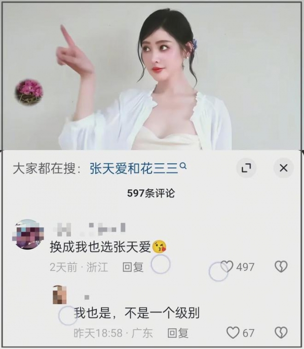 原本就是无实锤的爆料瓜,但或许是涉事主人公名声都很响亮的缘故,张天爱的社媒账号直接沦陷,弹幕和评论区都在提"华宵一"和"花三三"的名字,还有不少直接询问她是不是当小三了,影响极其恶劣。