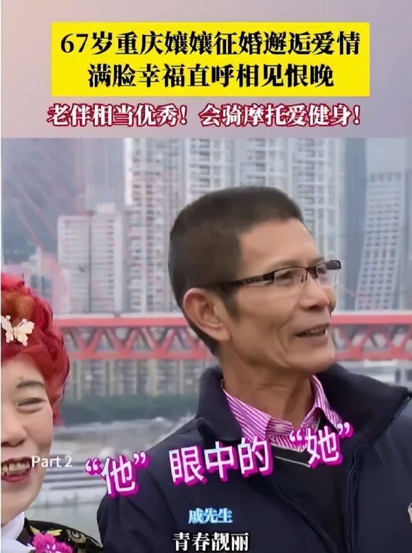 征婚成功后,她美滋滋地和自己的老伴,出现在镜头前。