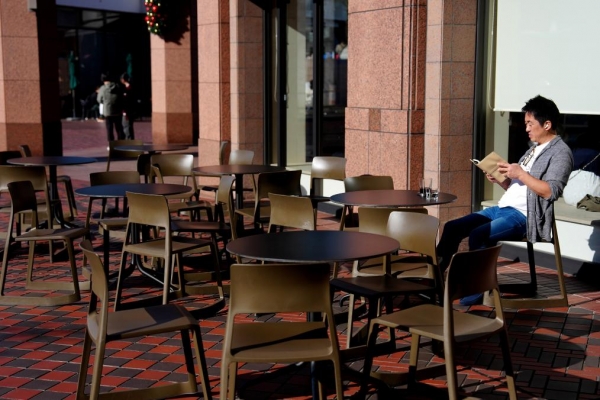 2025年11月17日,一名男子在日本东京的一家咖啡店外休憩。 新华社记者 贾浩成 摄
