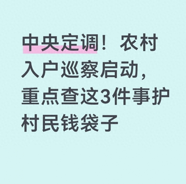 这次入户巡察,不瞎查、不乱查,就盯着咱农民最关心的3件事,每一件都跟咱的切身利益绑在一起,大家对照看看,身边有没有这些情况。
