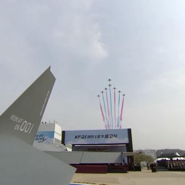 李在明在现场讲话中表示,韩国已经通过K9自行火炮和"天弓"导弹等证明了自己的军事技术和生产能力,现在又已经成为了能够独立设计和生产先进战斗机的国防与航空工业强国。他还称,韩国下一步将全力投入资金和政策支持,着手研发先进的飞机发动机、材料和零部件,以确保军事工业的可持续发展,韩国政府将继续朝着"国防自主化"这一目标迈进。讲话结束后,仪式现场还有韩国空军"黑鹰"飞行表演队的T-50教练机编队飞行表演助兴。