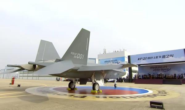此次下线的首架KF-21量产机是一架双座型号,垂尾按照韩国空军现役战机标准喷涂了"ROKAF 26 001"的字样(意为"韩国空军2026财年001号机")。相比于此前的类似仪式,这架飞机的采用了较为独特的亮相方式,没有使用牵引车牵引,而是启动发动机滑行到仪式现场,飞机上两名负责操作的飞行员分别为前座的中校试飞员全承贤(音译),和后座的中校女试飞员郑多祯(音译)。