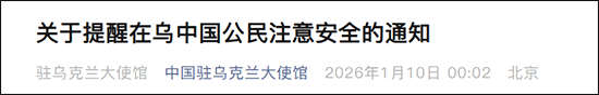 微信公众号"中国驻乌克兰大使馆"1月10日消息,近期,乌克兰全境频遭空袭,安全风险高企。