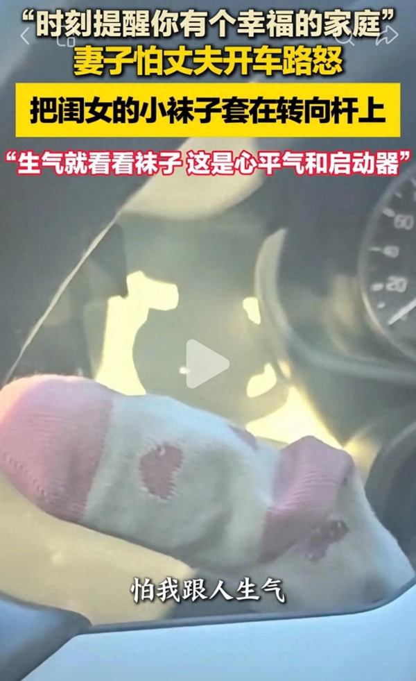 视频一发出,立刻引来几十万网友点赞。有人说:这是我见过成本最低、效果最好的"降怒神器";有人说:我也要给我老公安排上,专治各种开车不服;还有人说:不是袜子有用,是妻子的智慧和爱,化解了坏情绪。