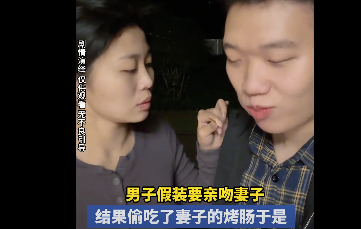 丈夫假装要和妻子亲吻 结果偷吃了妻子的烤肠 2026-04-17 09:31 网易 视频中,男子对着妻子一脸深情,慢慢凑近做出要亲吻的模样,妻子害羞地微微闭眼等待,没想到他趁其不备,一口叼走了妻子手里的烤肠,得逞后还一脸得意。网友纷纷调侃:这波偷袭技能前摇也太久了,全靠演技骗到了一个吻的期待。