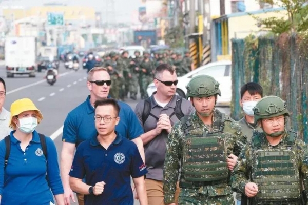 2023年3月底,台军"步兵117旅"在"教召训练"现场出现的外籍人员,疑似美军派驻台湾的教官。