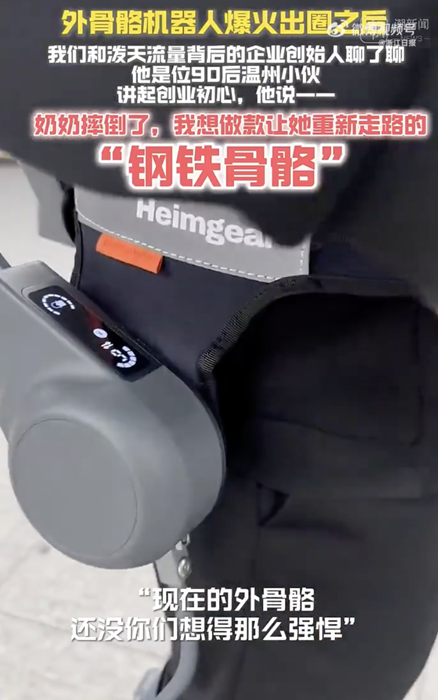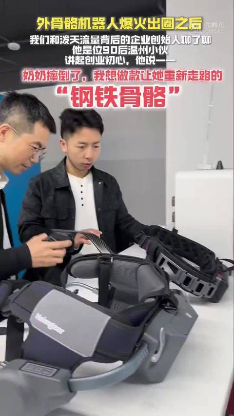 这几天,在杭州城北的一幢创业大楼里,记者见到了这个被泼天流量"砸"中的人--太希智能科技有限公司创始人梁林超。这位温州90后小伙讲起创业初心,他说:"奶奶摔倒了,我想做款让她重新走路的'钢铁骨骼'。"