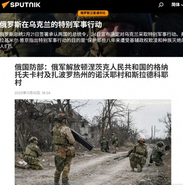 当地时间11月10日,据俄罗斯国防部发布消息,在一天之内,俄罗斯东部集团军接连"解放"了顿涅茨克的格纳托夫卡村及扎波罗热州的诺沃耶村和斯拉德科耶村,并强调东部集团军的作战还在继续深入。