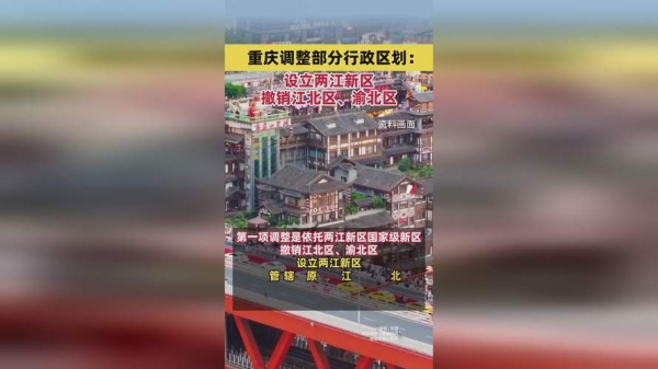 央视新闻消息,今天,重庆召开新闻发布会,介绍调整部分行政区划相关情况。此次行政区划调整涉及国家级新区两江新区以及江北区、渝北区和北碚区。