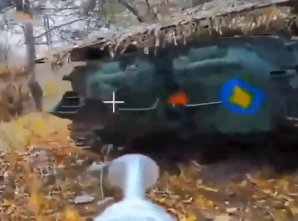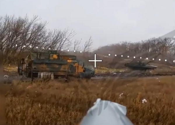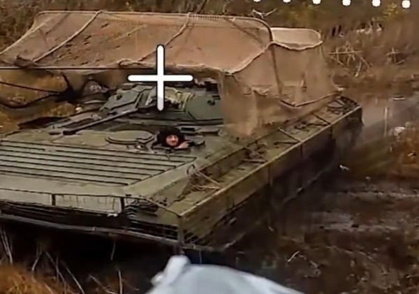 当然在天气状况稍好时,也会遭到无人机的打击;俄军最近放出的一例战果就是打了一辆步战车,命中前车内的乌军还以为是友军无人机,手指车外方向,结果当然是没啥用了。
