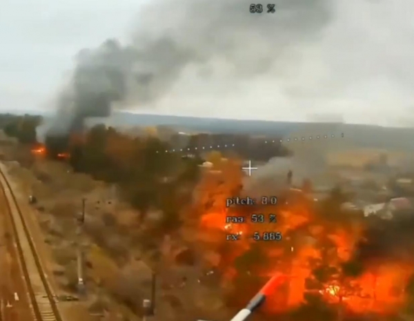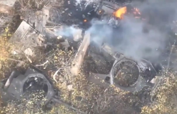 以往打击这样的集结地俄国人使用伊斯坎德尔导弹,所以大家不太能有很直观的地面视角;这一次俄国人是用无人机飞过去点杀的,结果愣是给烧了好几辆。