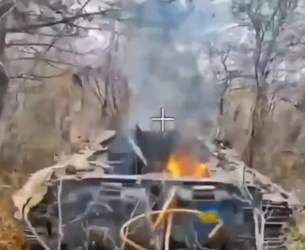 但令乌克兰人难绷的是,在库皮扬斯克东城区南侧的林带内,还有一个重装备集结地被俄国人发现,结果损失了一堆的步战车。