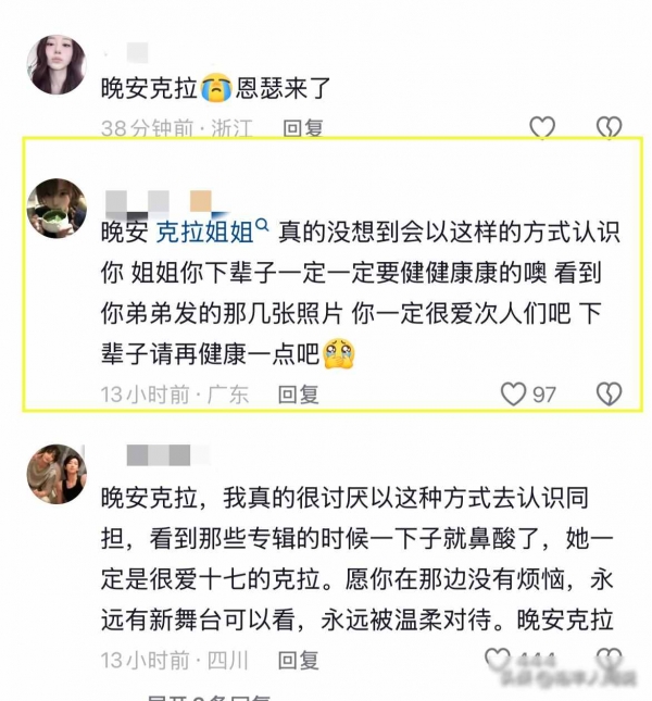2026年4月20日左右,湖南一位25岁的女孩去世了,她生前是SEVENTEEN的粉丝,网名叫"克拉姐姐",但没人知道她的真实姓名,弟弟在4月24日发了一条悼念视频,提到姐姐临走前只能靠止痛药坚持,连翻身都变得很困难,这段视频很快走红,获得50万点赞和两万多条留言,网友们自发称她为"克拉dre",这个称呼并非来自官方组织,而是大家自己喊出来的。