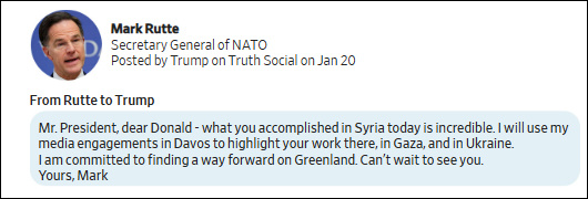 而特朗普日前晒出的与吕特短信显示,后者对其态度亲昵、大夸其功绩,还针对格陵兰问题作出表态,称"致力于寻找一条推进问题解决的道路"。短信一经公开就让欧洲人吵翻了天,不少网友在社交媒体指责吕特"出卖了欧洲"。