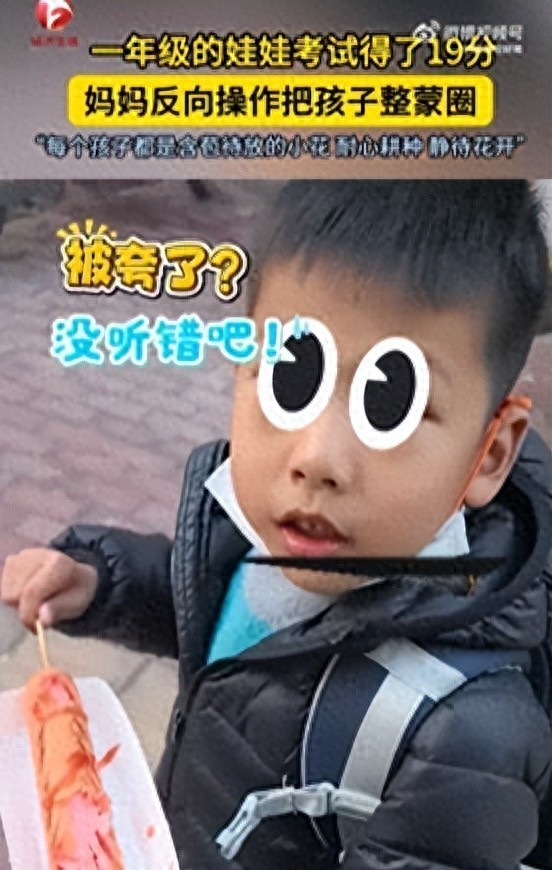 湖北武汉一个男孩放学回家说这次考试得了19分,以为妈妈会生气,结果妈妈反而夸他"这么高",孩子当场愣住。炸香肠的香味还在厨房飘着,男孩结结巴巴重复了几句"我我我……"完全没反应过来。