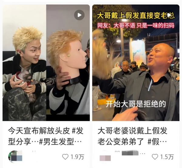 在短视频平台,"手把手教你用假发提升颜值" "如何发量激增显脸小" 等话题常年霸屏。