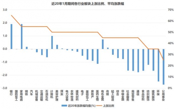 注:近20年1月期间各行业板块上涨比例、平均涨跌幅