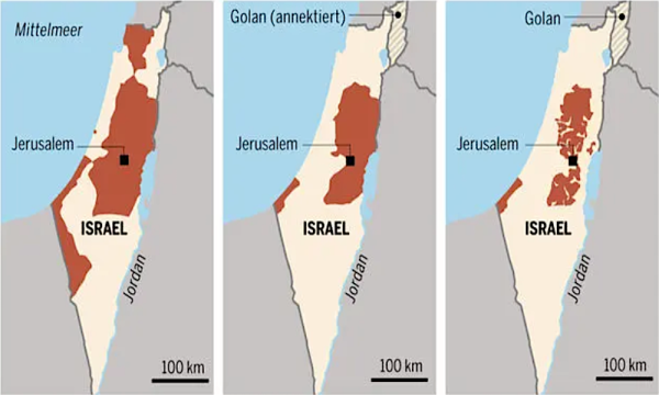 前者的大部分地区在1967年第三次中东战争后被以色列实际控制,碎化切割为165个"飞地";犹太人居民点一直在此不断扩大,"蚕食"成为以色列政府阻止巴勒斯坦立国的重要手段;流向死海的约旦河掌控在以色列手中,随时可以掐断巴勒斯坦的这条"命脉";阿巴斯的巴勒斯坦自治政府非常脆弱,内部腐败严重。