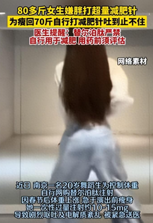 她听人说减肥针是"躺瘦神器",不用管住嘴、不用迈开腿,打一针就能轻松掉秤,压根没管这药合不合规、自己能不能用,偷偷找渠道买了药,还擅自加了剂量,就想着快点瘦出理想身材。