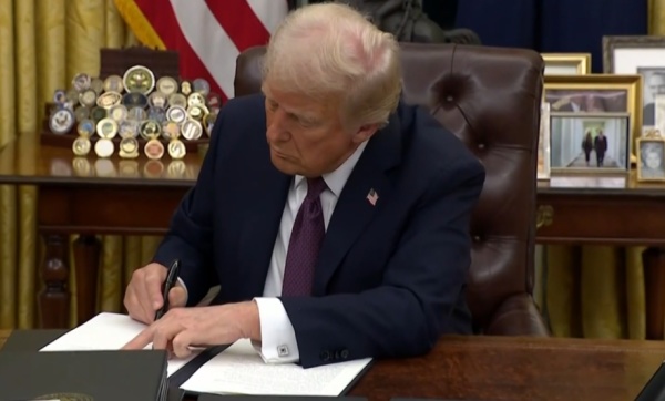 2025年1月20日,特朗普签署行政命令,暂停所有对外援助计划。视频截图