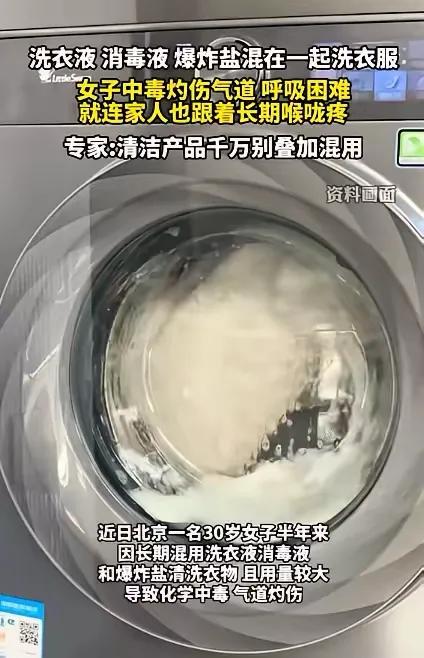 总觉得衣物洗不干净,于是把洗衣液、消毒液、爆炸盐、留香珠一股脑全倒进洗衣机,还刻意加大用量,北京一名女子因这样的洗衣习惯,在不知不觉中慢性中毒,最终突发呼吸困难被送医,付出了惨痛的健康代价。