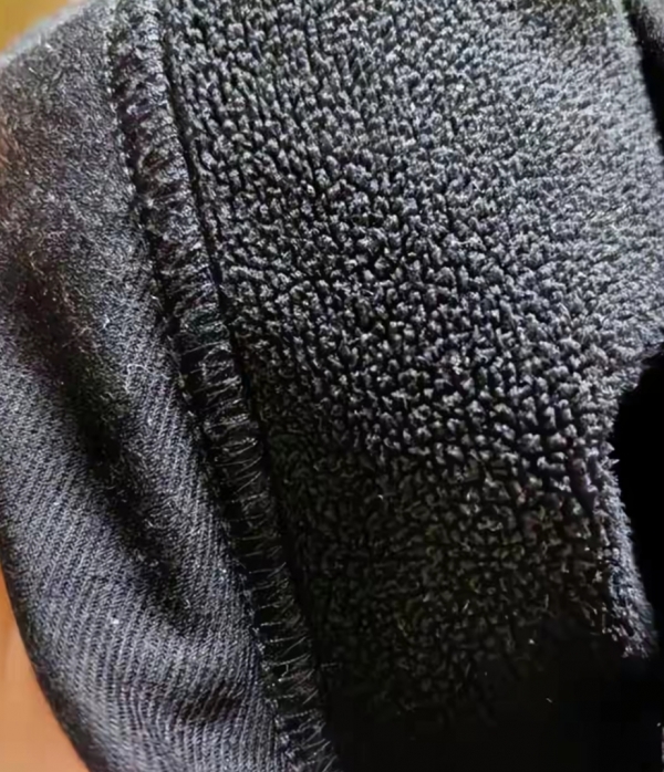 咱们平时穿的加绒裤大多是外层布和里层绒粘在一起的复合款,正规厂家用的是环保热熔胶,粘合的牢固,成本高但无毒无害,穿久了也不容易掉绒。