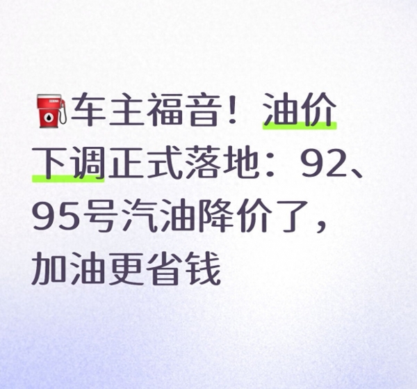 本次降价覆盖所有使用汽柴油的交通工具,私家车、网约车、出租车、货运车辆、工程机械等均能受益,不仅减轻个人出行负担,也对物流运输、同城配送、农业生产等领域起到成本缓解作用。
